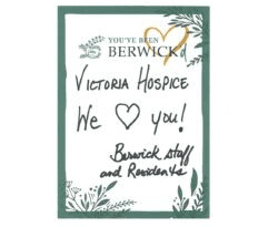 When presenting the donation to Victoria Hospice CEO Teri Henderson, Kathy McAree, Berwick Community Relations Manager shared, “We know what you do is so incredibly special. I can’t imagine what it takes to do the jobs that you do, and we thank you from our hearts, for all of that, and for the love that you share in Victoria. I know you can just see by the looks on everybody’s faces that it’s near and dear to us, and it’s not lost on us the incredible work.”